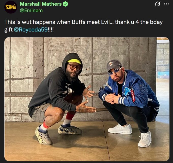 Uncharacteristically, Eminem himself took to social media to show off a gift from his longtime friend Royce 5’9.