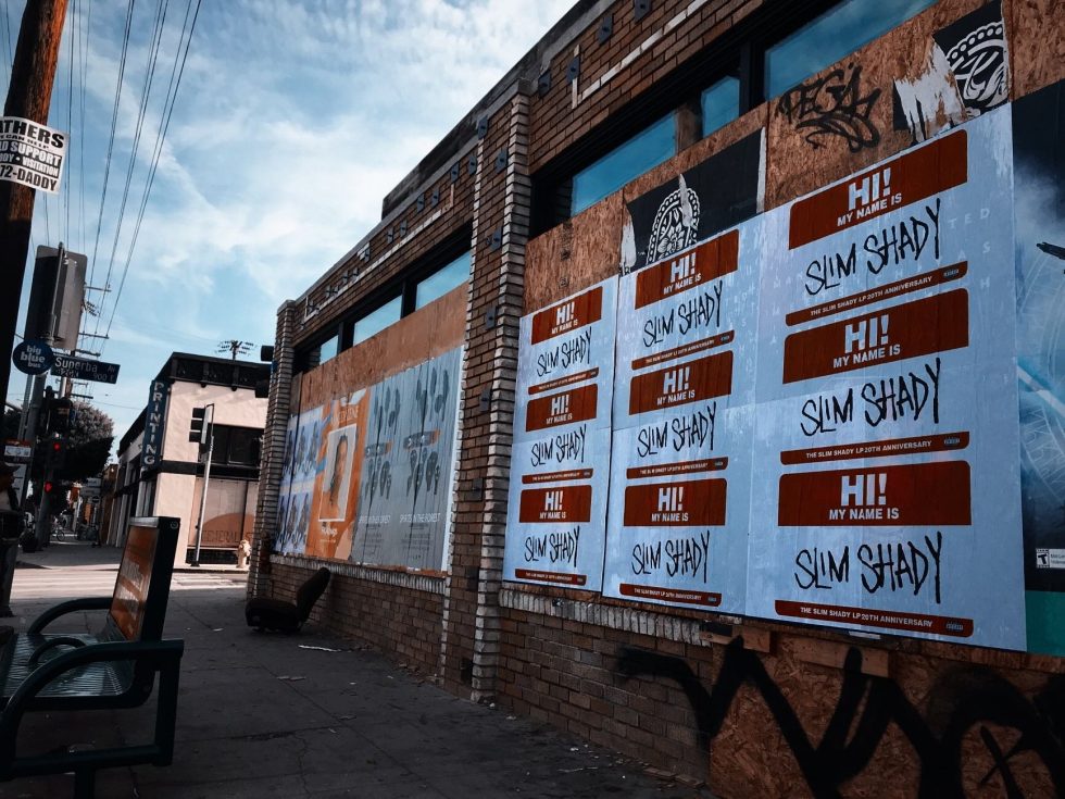 Finally The Slim Shady LP turned 20 in February this year but still Shady are promoting it with Merchandise 9 months on and now all of a sudden posters are turning up in and around the U.S and even Brazil.