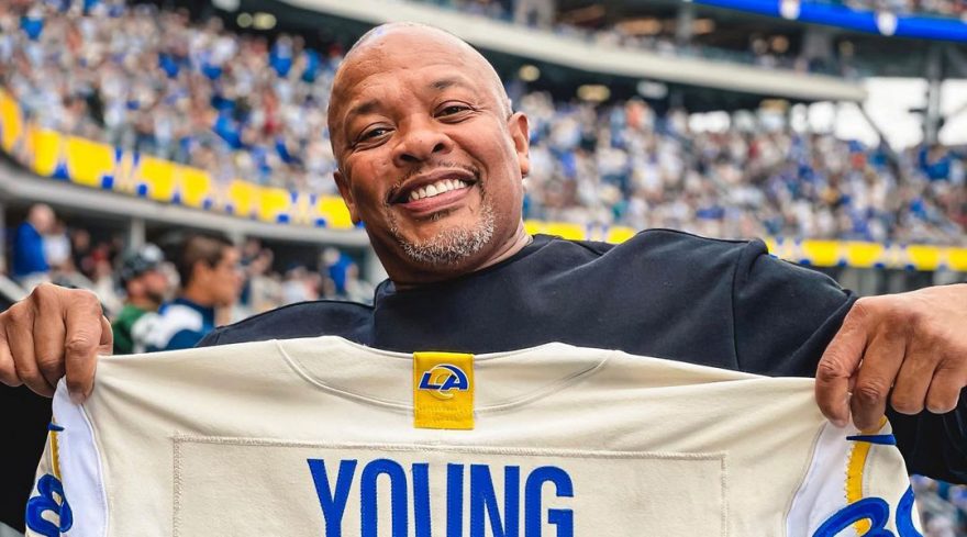 The Rams official Instagram account published the picture of Dr. Dre posing happily with a gift from the team and captioned it with:
