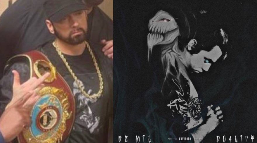 At the historic Terence Crawford fight in Las Vegas this Saturday Eminem was wearing a T-shirt with the “DU4LI7Y” album cover print from Ez Mil, the latest Shady Records artist.