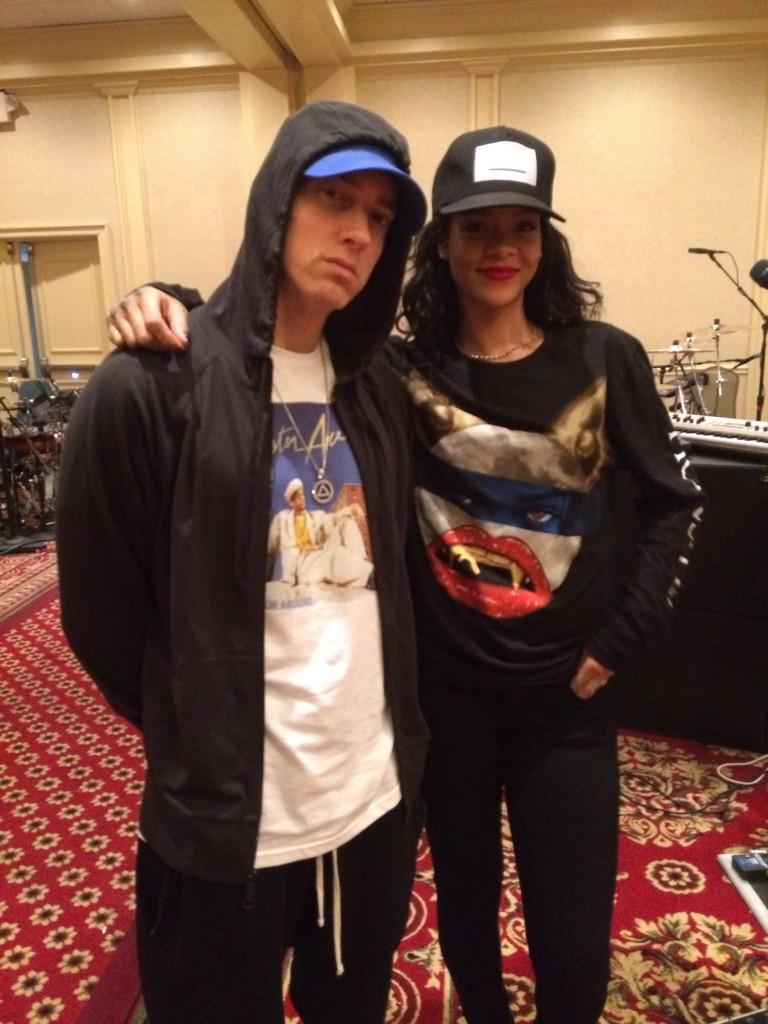 With a little over a week to go, Eminem and Rihanna are putting the final touches on “The Monster Tour.” The Detroit rapper has shared the first photo of him and RiRi in rehearsals for the stadium shows.