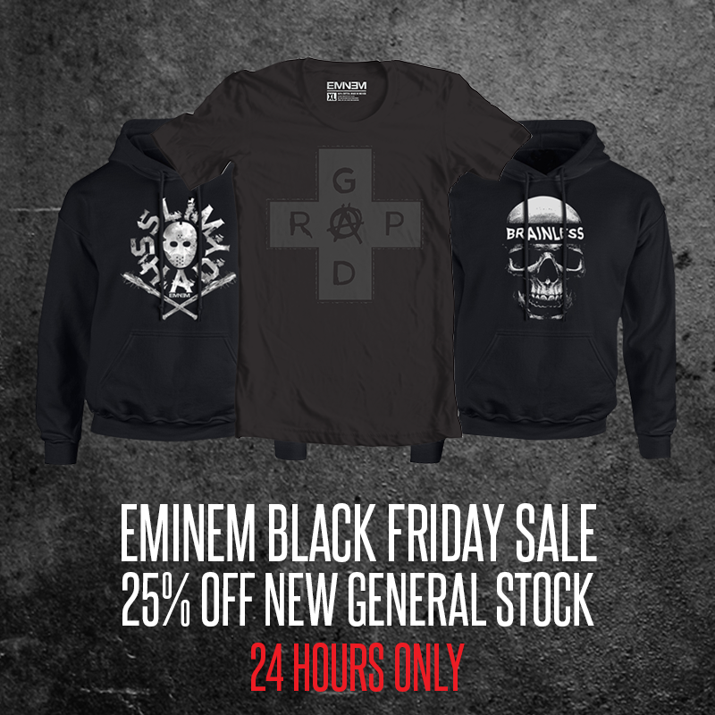 Eminem: Why be king when you can be a god? Black on black for Black Friday limited edition #RapGod tee. Only available today until Midnight ET. All new designs also on sale.
