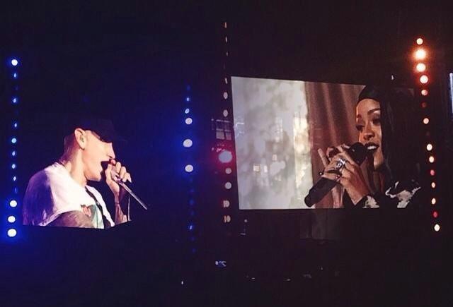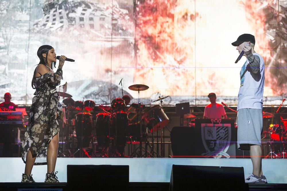 The pair then moved right into “The Monster,” finally locking eyes for just a few moments midway through that massive hit and sizing each other up before, just like that, Rihanna was gone.