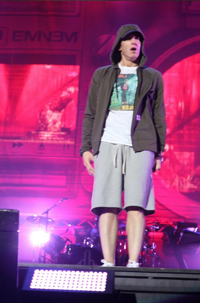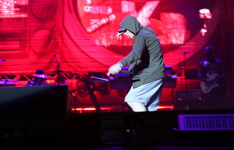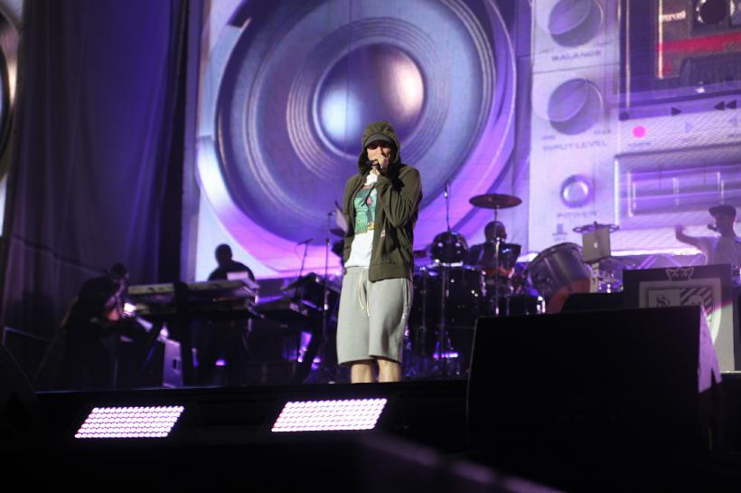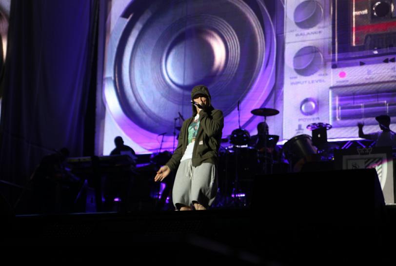 There was still plenty of show, though, as the crowd went understandably bananas when Em busted out a three-pack of oldies, starting with “My Name Is” and “The Real Slim Shady” and then sliding into “Without Me,” which was amped up with a thumping EDM vibe. He threw in a bunch of other crowd favorites during the set, including “Bizness, “Kill You,” “Rap God,” “Criminal,” “The Way I Am,” “Berzerk” and “Cinderella Man.”