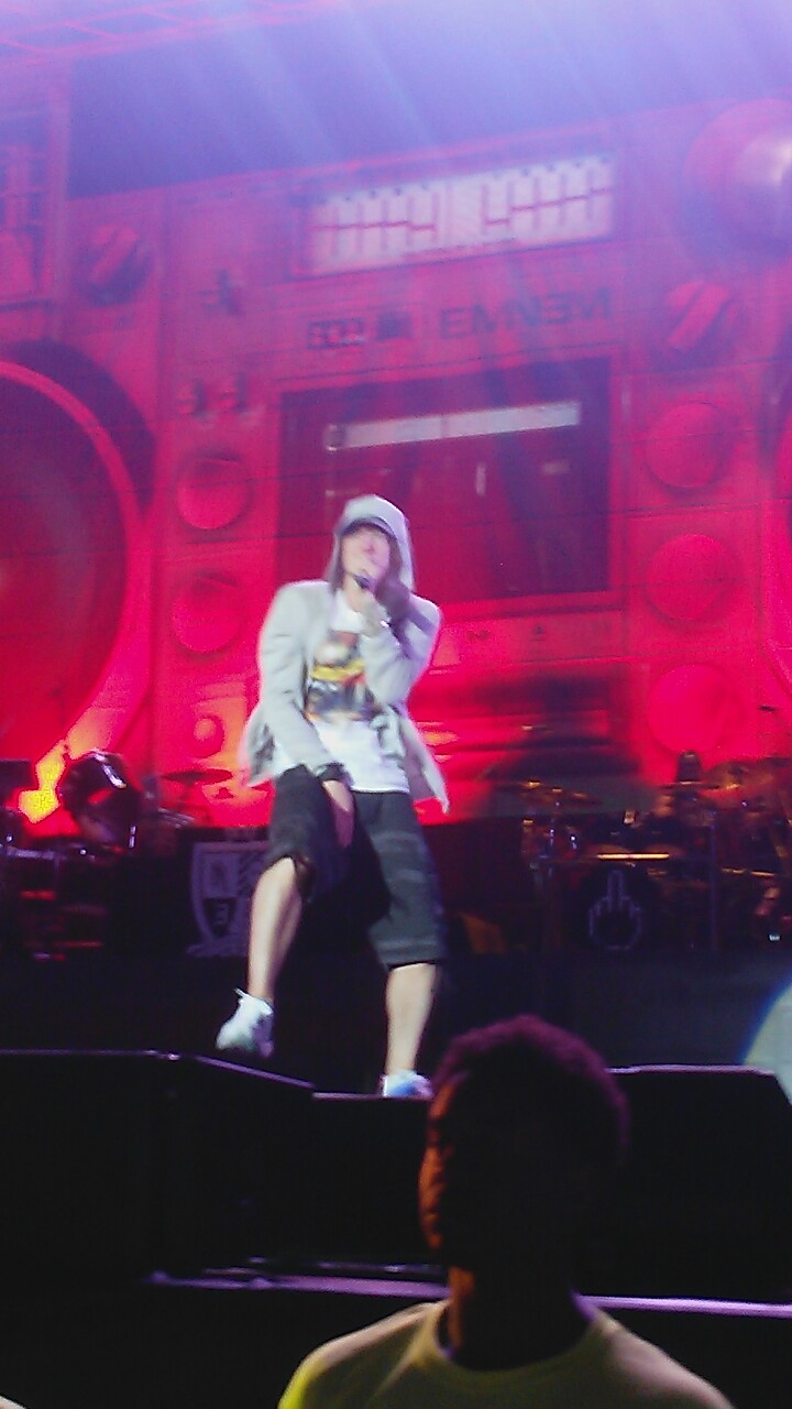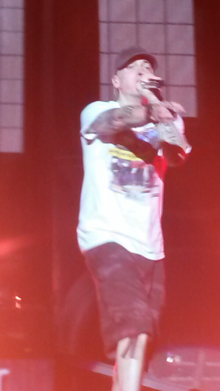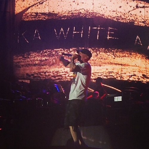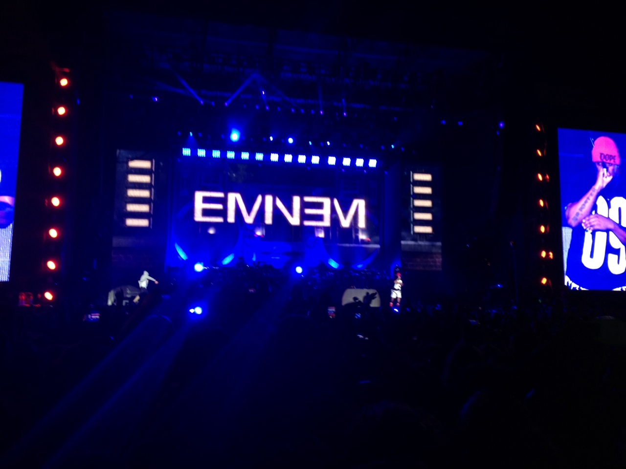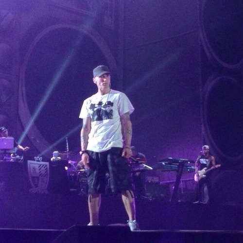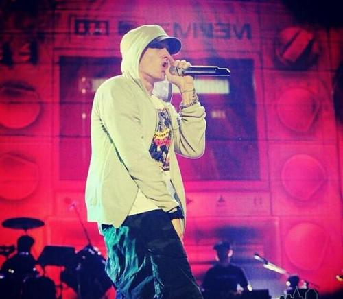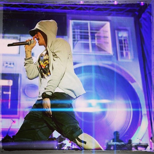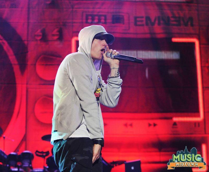 Eminem closed out day 2 of the 2014 Music Midtown festival in Atlanta last night from the Electric Ballroom stage. Dressed in his favorite cap and hoodie, Marshall started off his set with ‘Bad Guy’, ‘Won’t Back Down’ and ‘3 a.m.’
