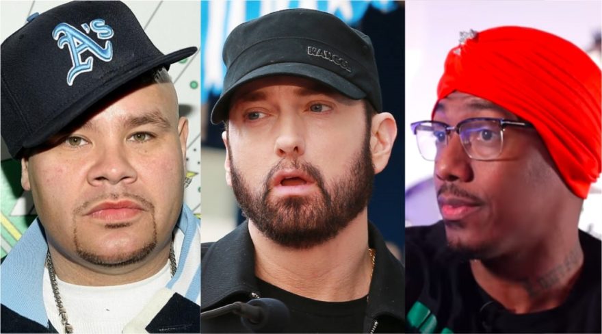 Nick Cannon seemingly extended an olive branch to Eminem during his interview with Fat Joe but quickly got back to his good old self-promoting tricks.