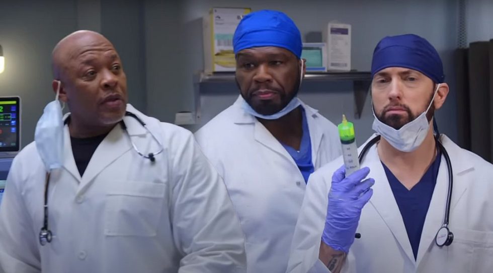 The cherry on top? Eminem’s late arrival was complete with a menacingly large syringe filled with a suspicious green goo. That was one shot he missed to give.