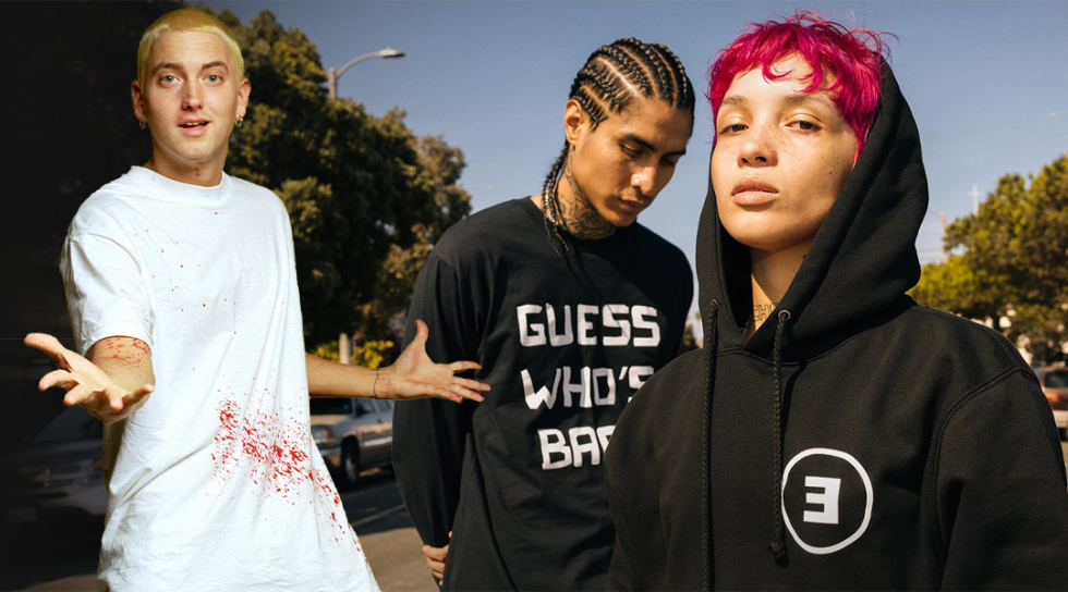 The new merch capsule contains t-shirt and hoodies that read “Hi, My Name Is Slim Shady”, “Guess Who’s Back”, “Slim Shady”, and “I am Infinite” — a nod to Em classic “Slim Shady EP” and “Eminem Show” albums as well as his very first independent LP release “Infinite”.