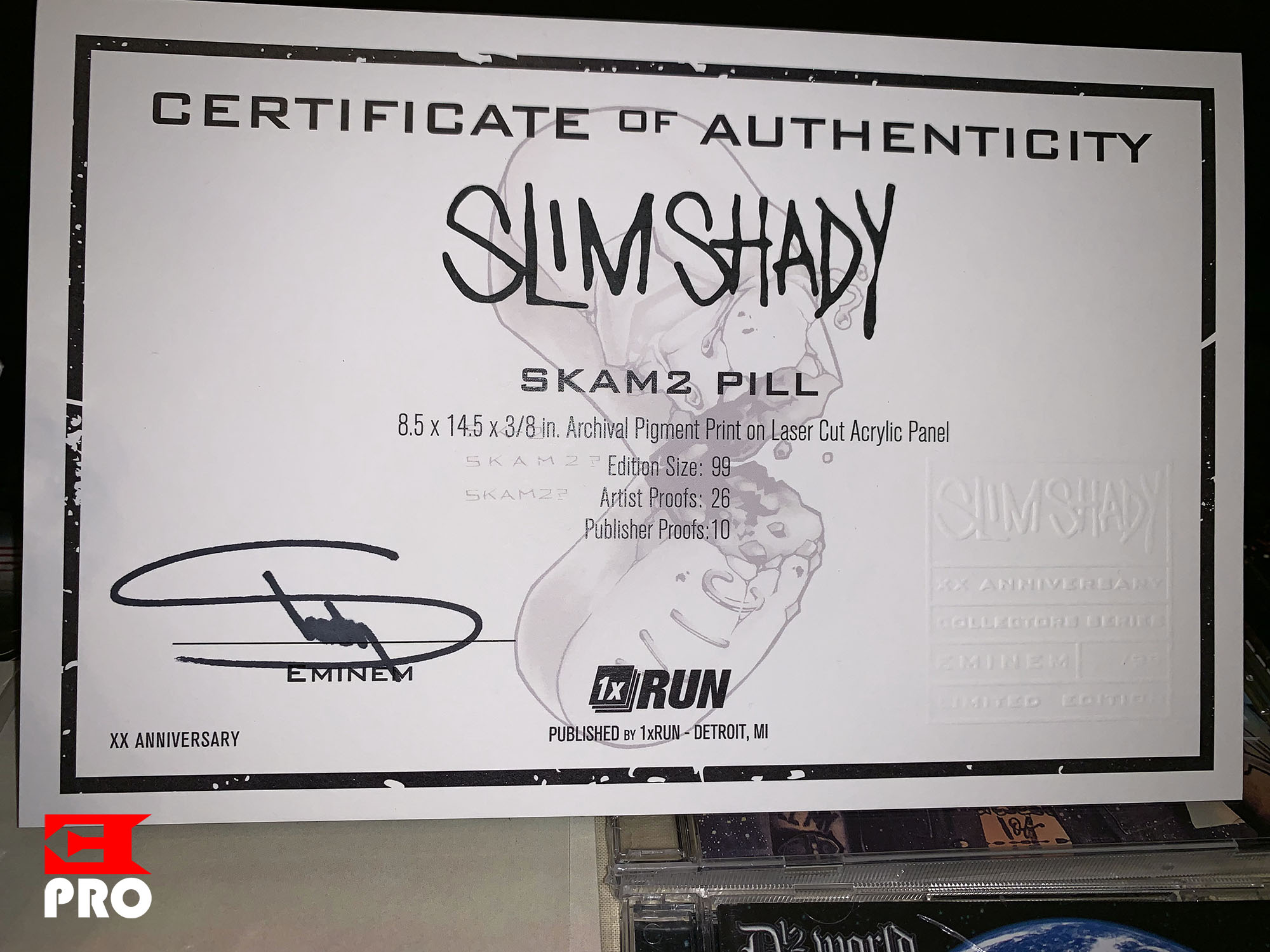 Unpacking: acrylic collectible “SKAM Pill” with Eminem’s autograph dedicated to 20th anniversary of SSLPBy Stanley Mitchell / June 5, 2019
