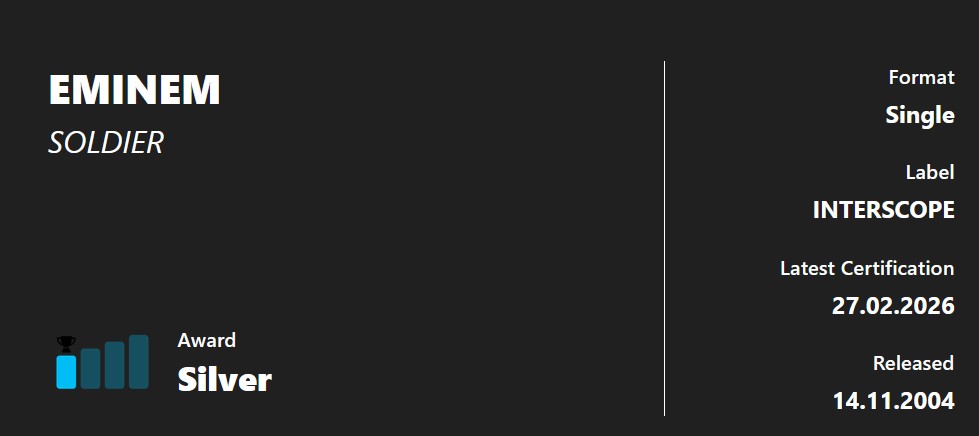 Despite the song’s merits, it was overshadowed by other hits on “The Eminem Show”. The wider audience wouldn’t even be able to recognise the song. The track only reached 100 million streams in 2023, trailing way behind such streaming juggernauts as “Without Me” and “’ Till I Collapse”, which clocked over 2 billion streams each. Until recently, “Soldier” had only one certification, Gold from the RIAA obtained in the 2022 mass update.